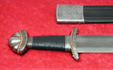 EP15 copy of highly decorated viking noble swordblade folded steel (damasc), guard and pommel with engavings, decorated scabbard & wooden box included |
