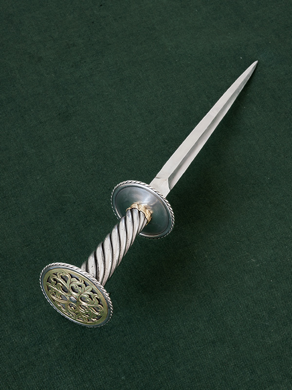 PT11 exact copy of a rondel dagger Western Europe, XVth century length: 34 cm, weight: cca 325g The original dagger is a property of Museo Lázaro Galdiano, Madrid, Spain |