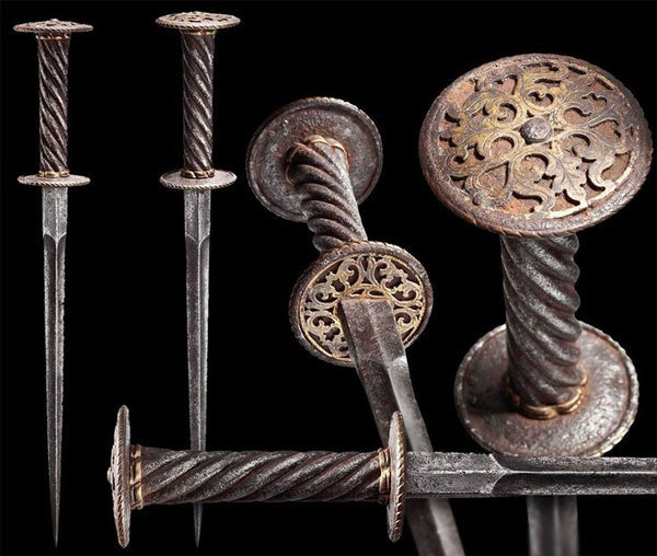 PT31 copy of a rondel dagger Italy or southern Germany, late XV -1st quarter XVI th century length: 41,5 cm